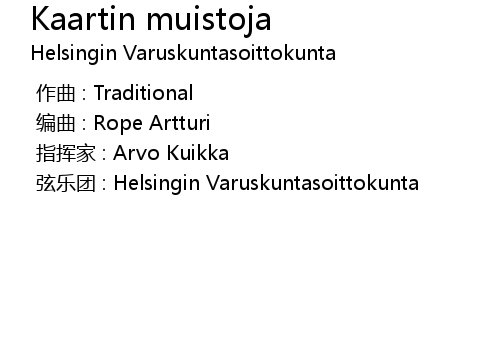 | [00:00.000] | 弦乐团 : Helsingin Varuskuntasoittokunta |