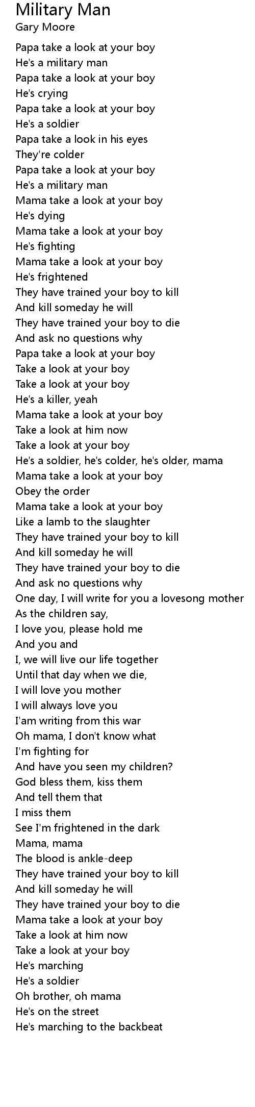 He's a soldier, he's colder, he's older, mama |