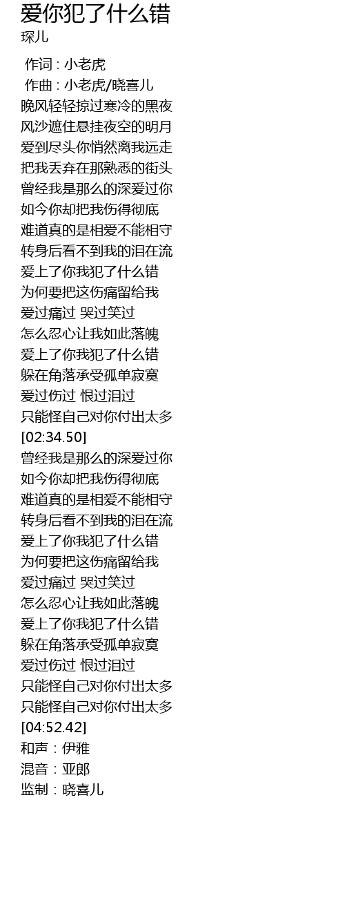 | [03:33.17] | ai shang le ni wo fan le shen me cuo |
