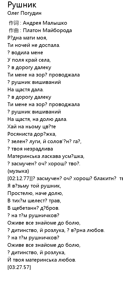 | [00:56.57] | ? рушник вишиваний |