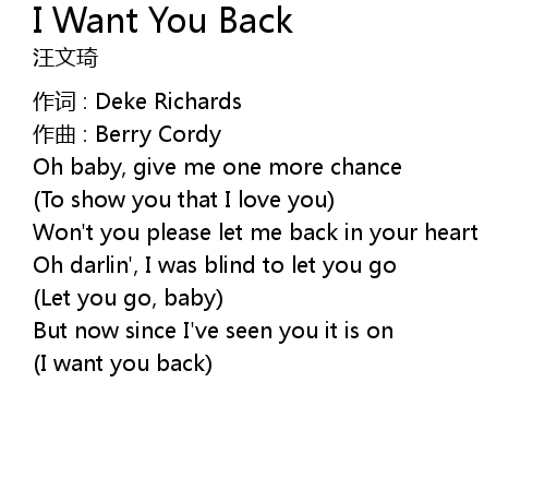 | Song | I Want You Back |