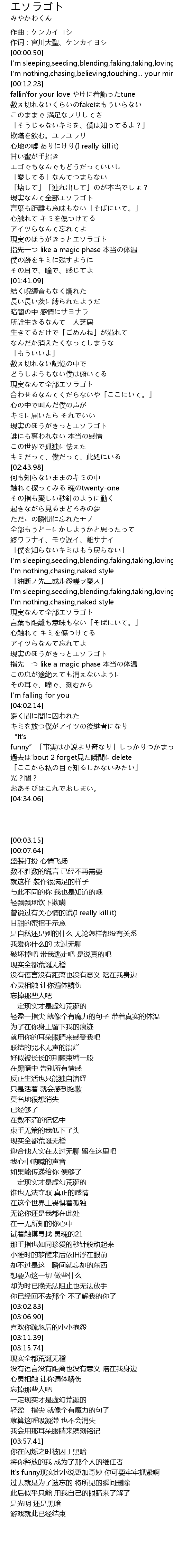 | [02:58.32] | 終ワラナイ、モウ遅イ、離サナイ |
