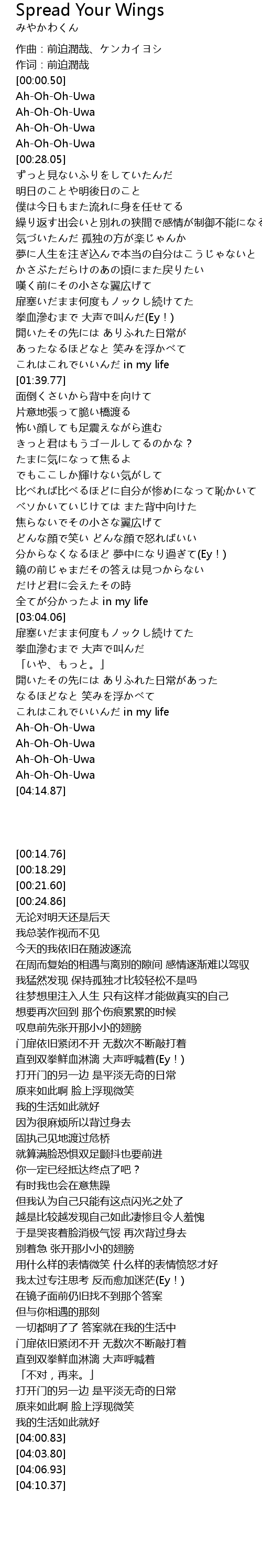 | [01:03.92] | 嘆く前にその小さな翼広げて |