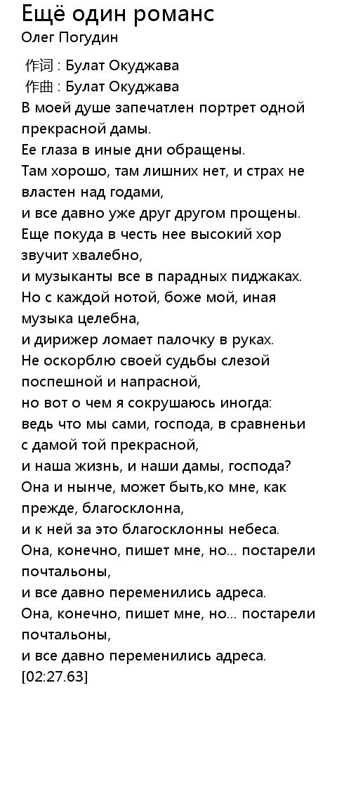 [01:56.33] Она, конечно, пишет мне, но... постарели почтальоны,
