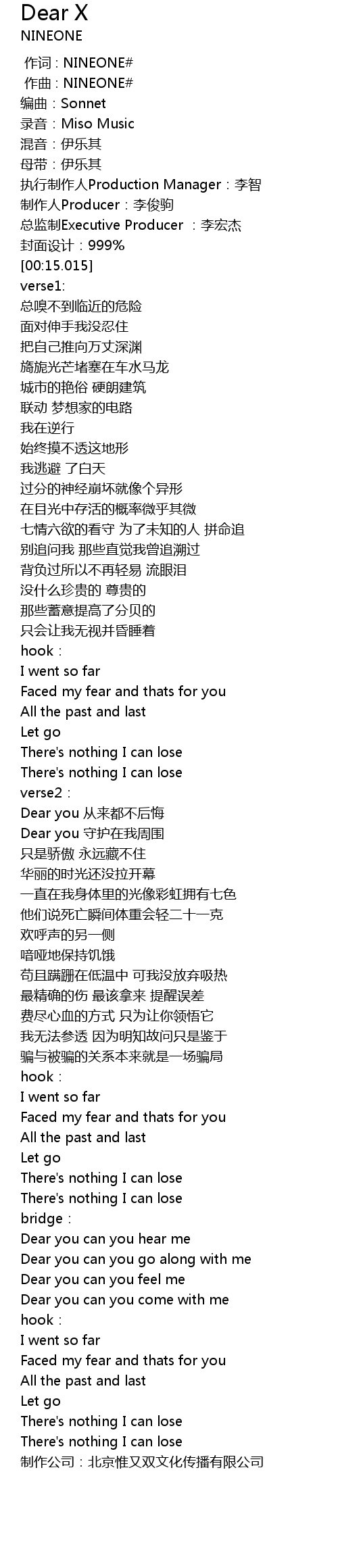 | [00:01.000] | zuo qu : NINEONE |