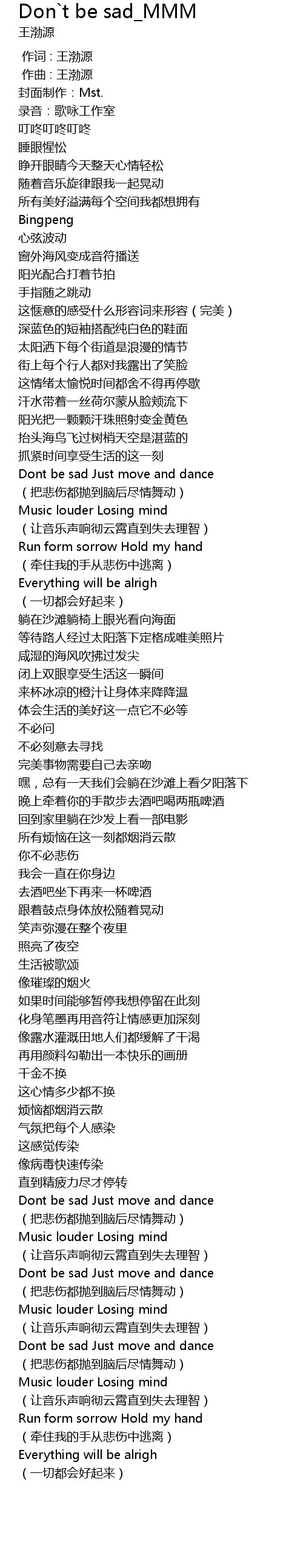 | Song | Don`t be sad_MMM |