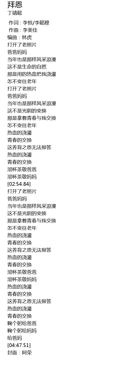 | [04:01.58] | 沏杯茶敬妈妈 |