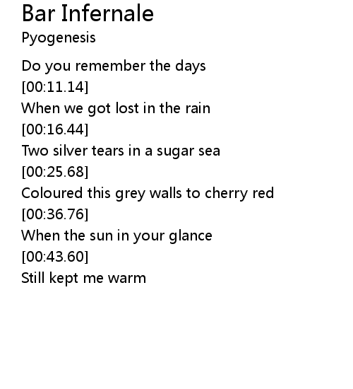 | [00:18.81] | Two silver tears in a sugar sea |