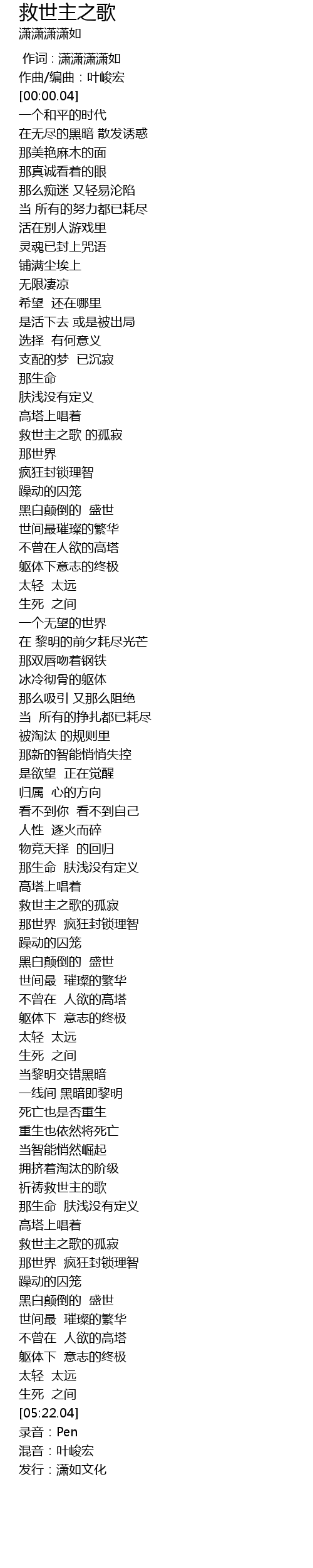| [01:28.68] | 救世主之歌 的孤寂 |