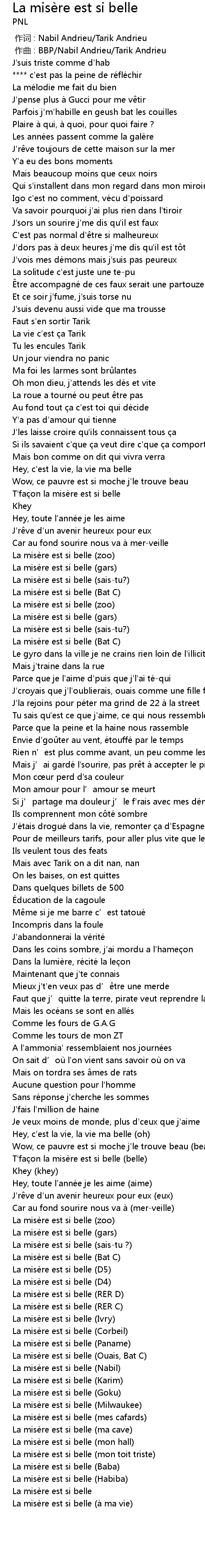 | [00:01.000] | zuò qǔ : BBP Nabil Andrieu Tarik Andrieu |