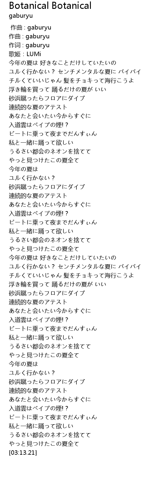 Botanical Botanical Lyrics