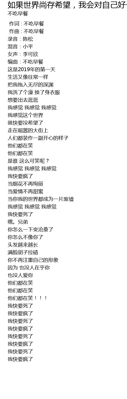 | [00:01.000] | 作曲 : 不吃早餐 |