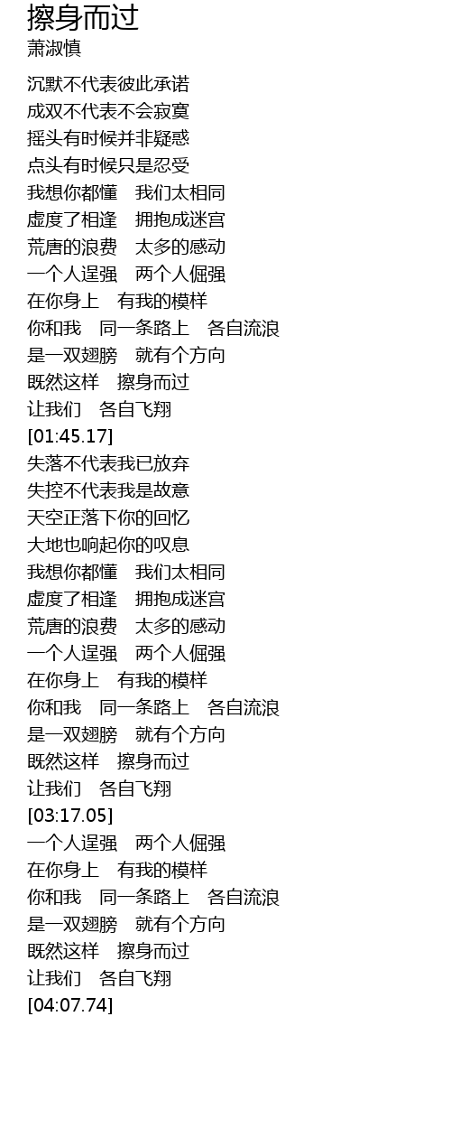 | [03:05.15] | jì rán zhè yàng cā shēn ér guò |