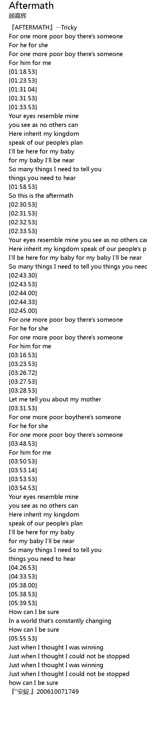 | [00:06.00] | 『AFTERMATH』--Tricky |