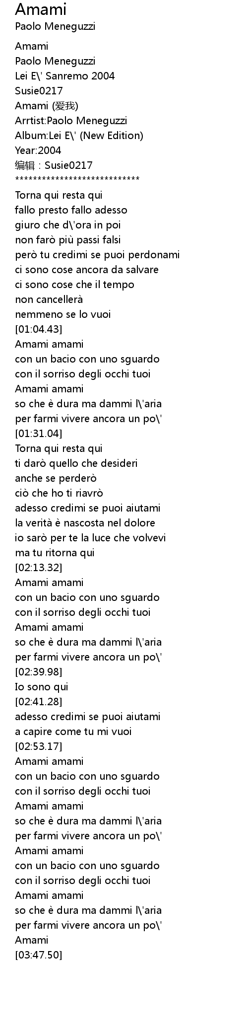 | [02:01.23] | adesso credimi se puoi aiutami |