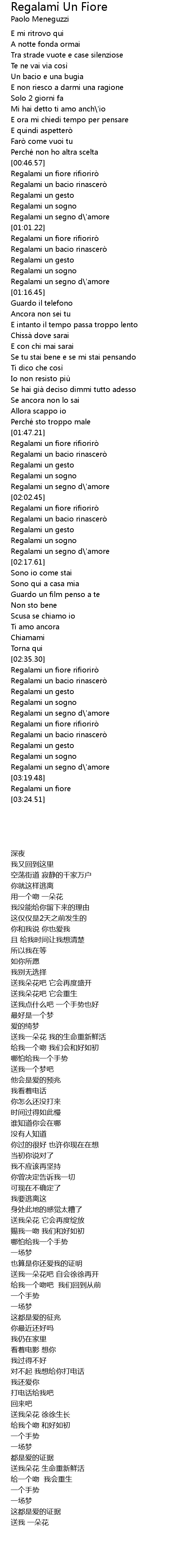 | [01:47.94] | Regalami un fiore rifioriro |