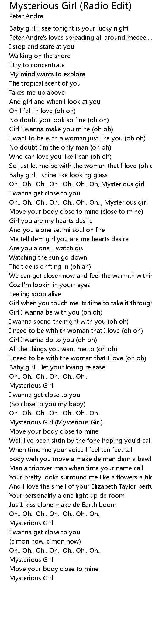 Mysterious Girl (Radio Edit) Lyrics