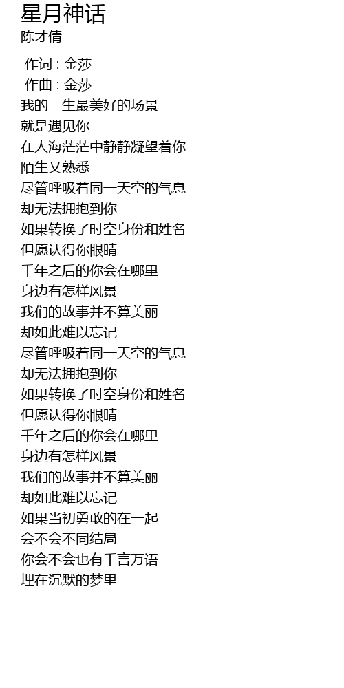 | [00:00.000] | 作词 : 金莎 |