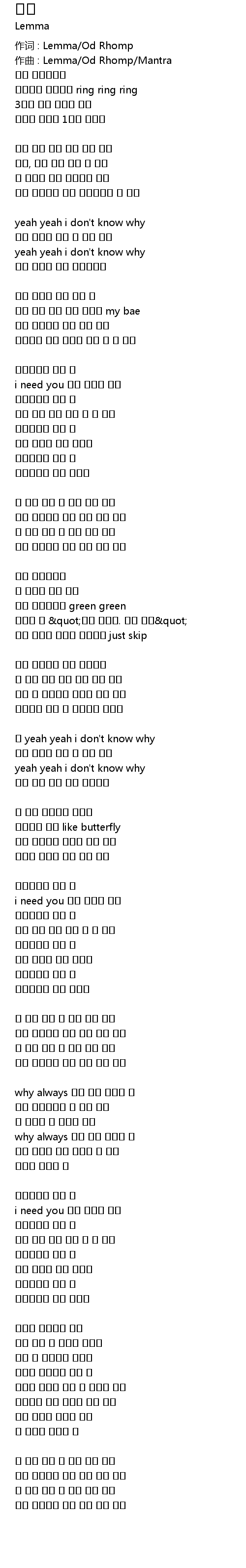 作词 : Lemma/Od Rhomp |