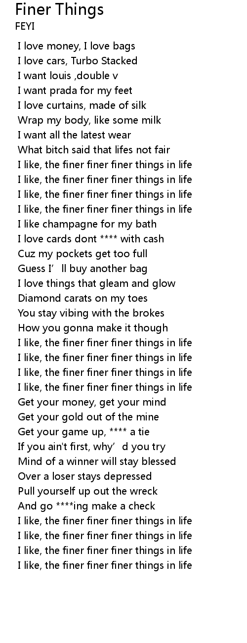 | [01:12.423] | I like, the finer finer finer things in life |