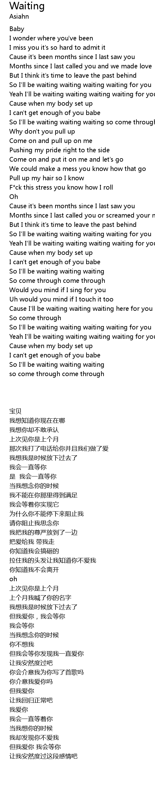 So I'll be waiting waiting waiting waiting for you |