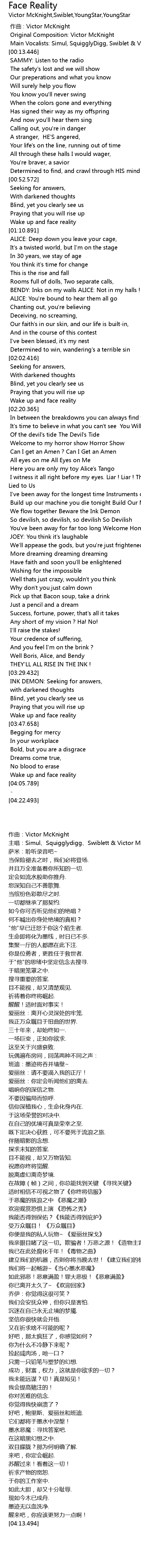 | [01:40.220] | BENDY: Inks on my walls ALICE: Not in my halls ! |