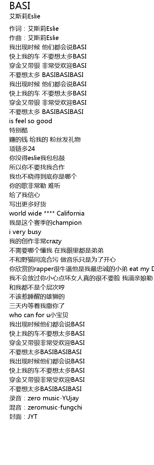 | [01:43.69] | 我出现时候他们都会说BASI |