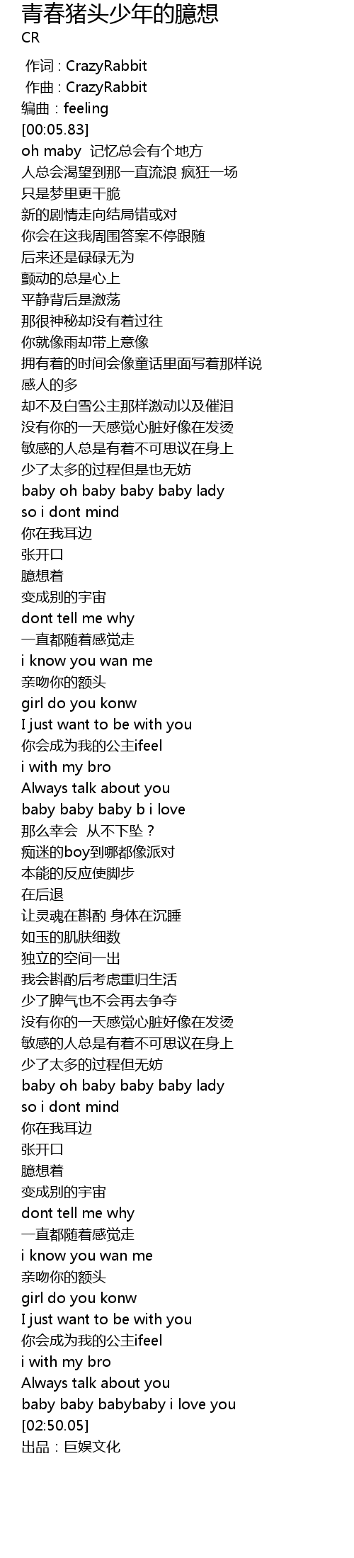 | [00:01.000] | zuò qǔ : CrazyRabbit |
