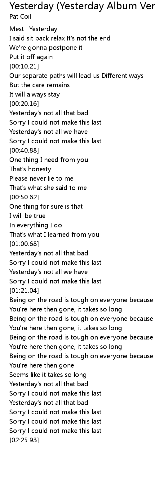 | [02:06.06] | Yesterday's not all that bad |