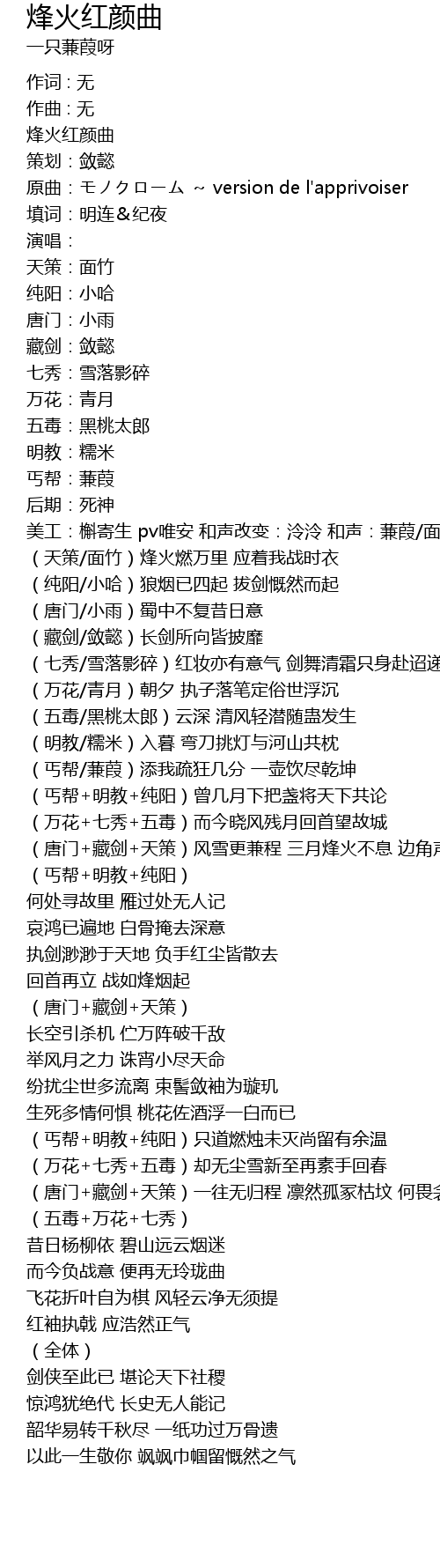 | 美工:槲寄生 pv唯安 和声改变:泠泠 和声:蒹葭/面竹/糯米 | |