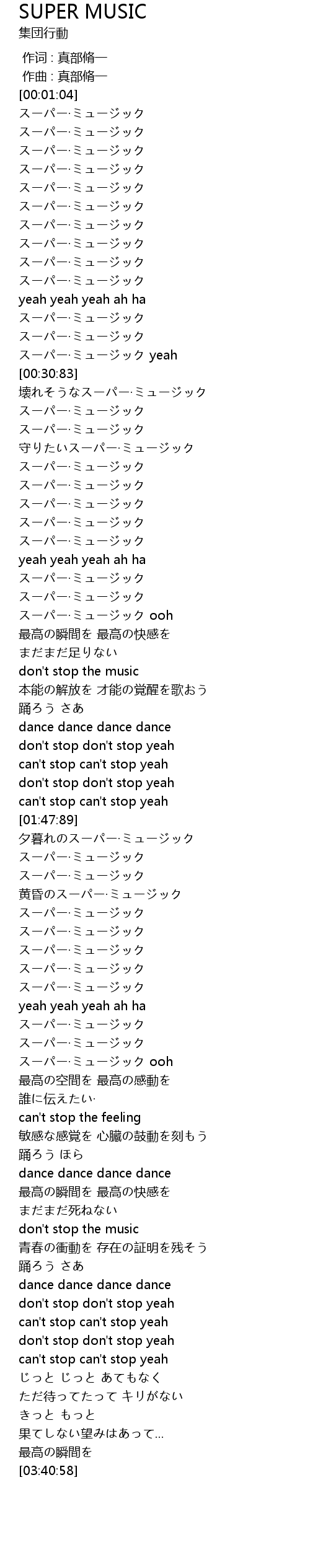 | [00:47:17] | 壊れそうなスーパー·ミュージック |