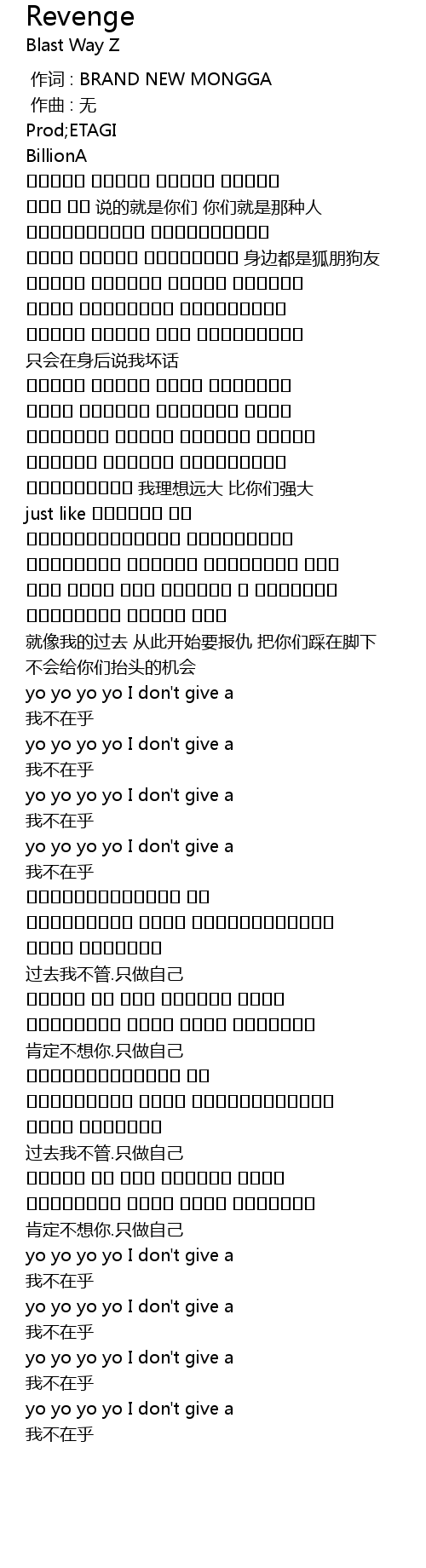 | [00:47.928] | 就像我的过去 从此开始要报仇 把你们踩在脚下 不会给你们抬头的机会 |