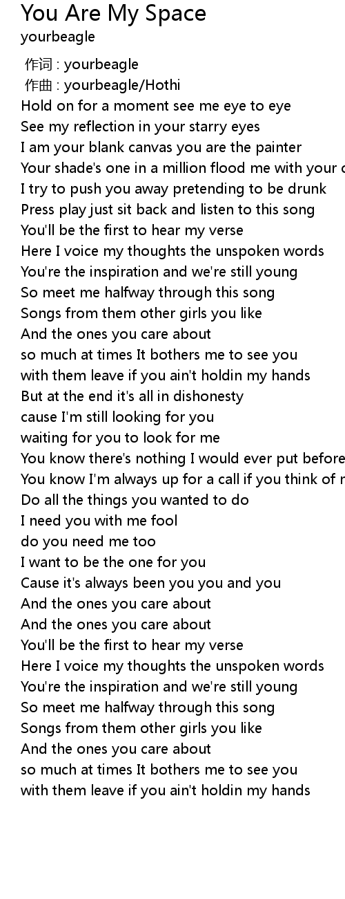 | [00:11.500] | Hold on for a moment see me eye to eye |