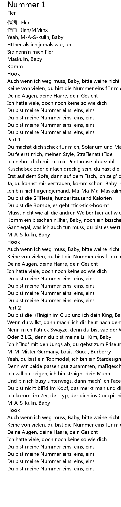 | Keine von vielen, du bist die Nummer eins f r mich | |