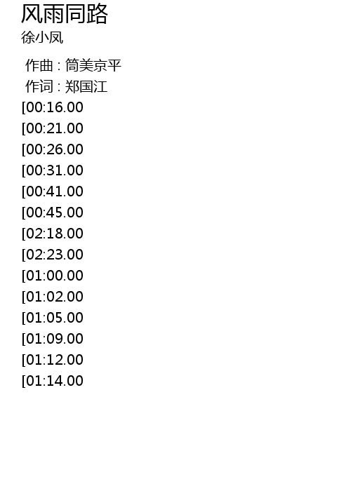 | [02:01.00][01:12.00] | 风雨同路见真心 |