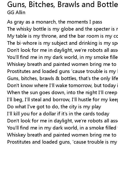 Guns, bitches, brawls & bottles, that's the only life I lead