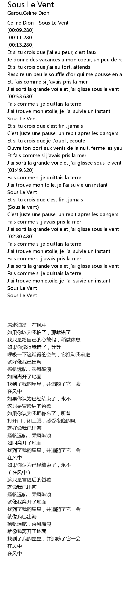 | [00:00.000] | Celine Dion - Sous Le Vent |