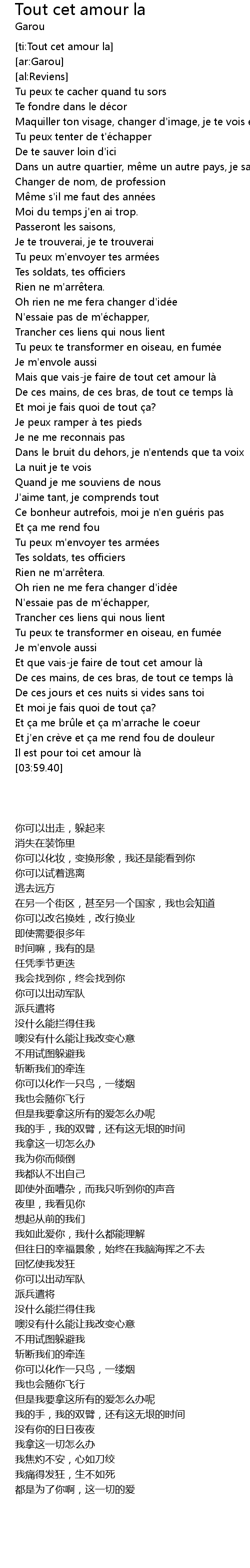 | [01:40.34] | De ces mains, de ces bras, de tout ce temps la |