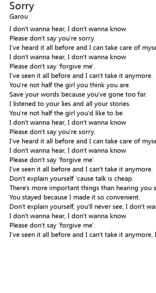 | Don' t explain yourself, you' ll never see, I don' t wanna hear. | |