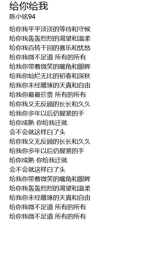 | gěi nǐ wǒ wēi bù zú dào suǒ yǒu de suǒ yǒu | |