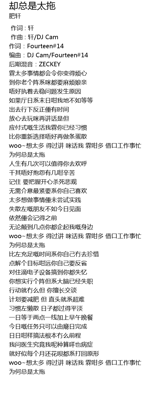 | [02:17.889] | woo~想太多 得过讲 咪话我 霖咁多 借口工作事忙 |