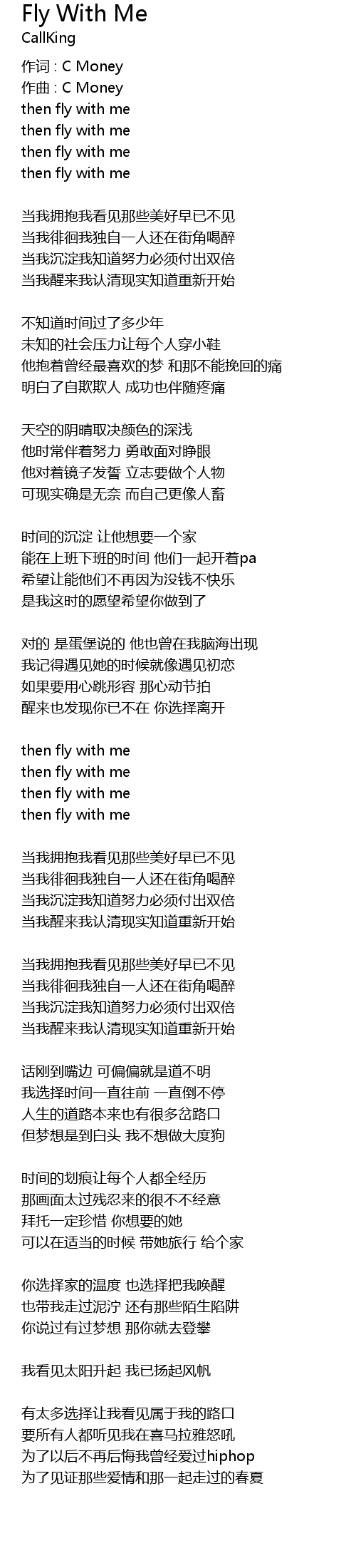 | 作词 : C Money | |