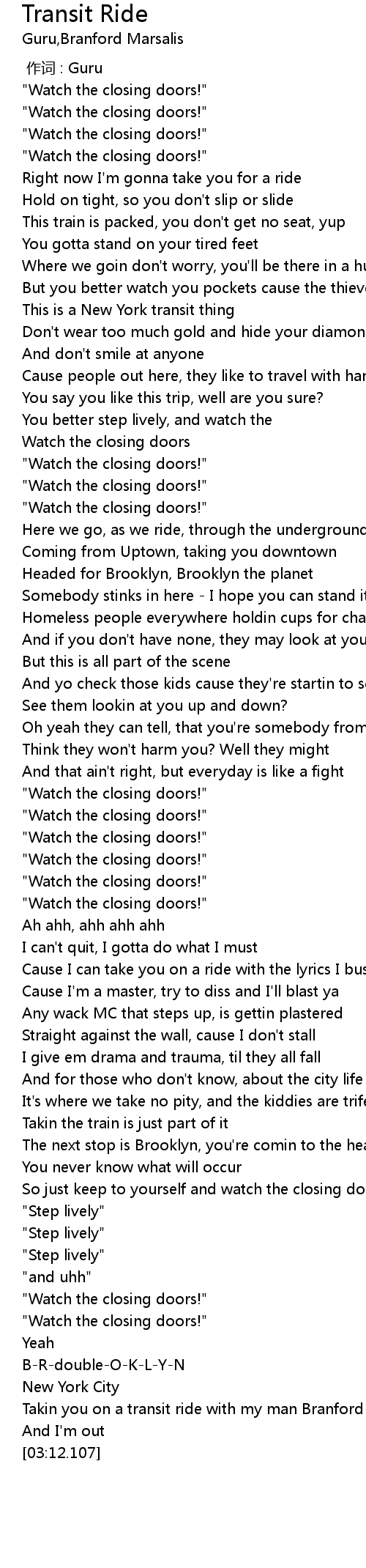 | [01:46.456] | "Watch the closing doors!" |