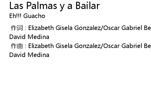 | [00:00.000] | 作词 : Elizabeth Gisela Gonzalez/Oscar Gabriel Belondi/Alfredo David Medina |