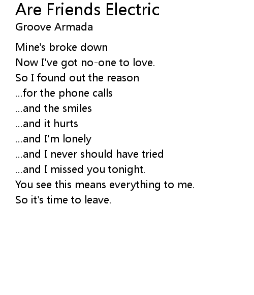 | Song | Are Friends Electric |