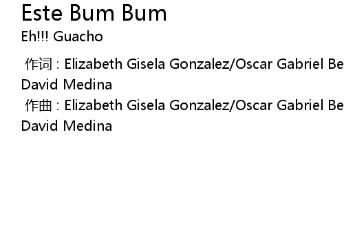 | [00:00.000] | 作词 : Elizabeth Gisela Gonzalez/Oscar Gabriel Belondi/Alfredo David Medina |