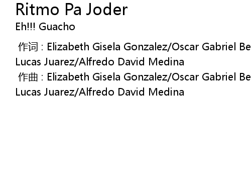 | [00:00.000] | 作词 : Elizabeth Gisela Gonzalez/Oscar Gabriel Belondi/Victor Lucas Juarez/Alfredo David Medina |