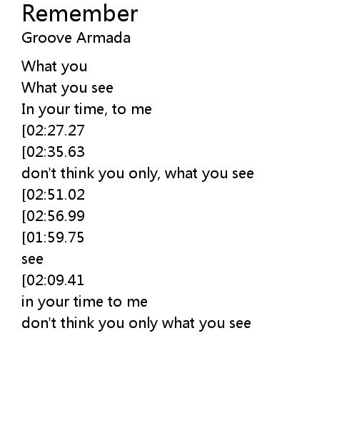 | [01:45.18][01:59.75][03:41.98][03:49.78][03:56.96][04:04.05] | remember what you see |