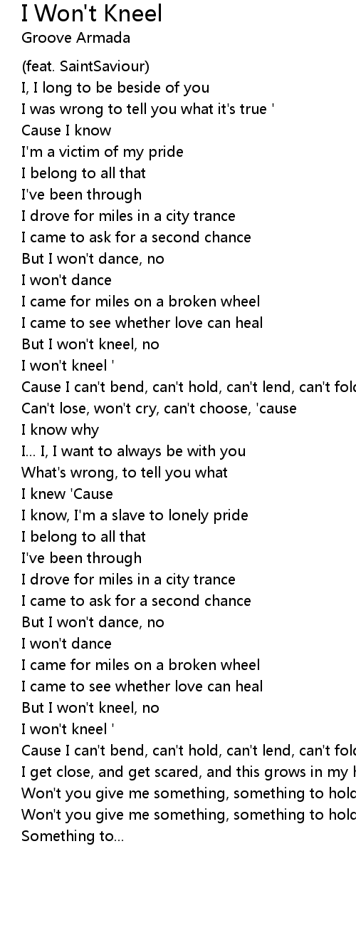 Cause I can't bend, can't hold, can't lend, can't fold |
