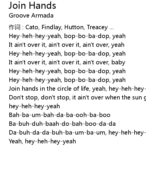 | Join hands in the circle of life, yeah, heyhehheyyeah | |